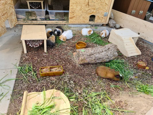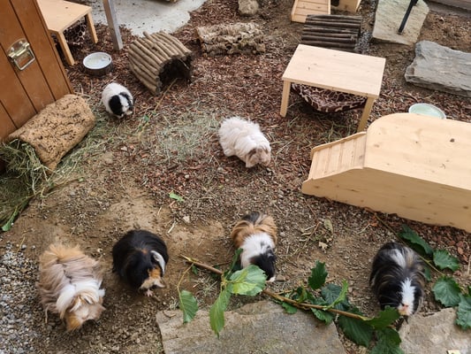 Es verbringen aktuell 24 Meerschweinchen und 9 Hühner ihren Lebensabend bei uns.